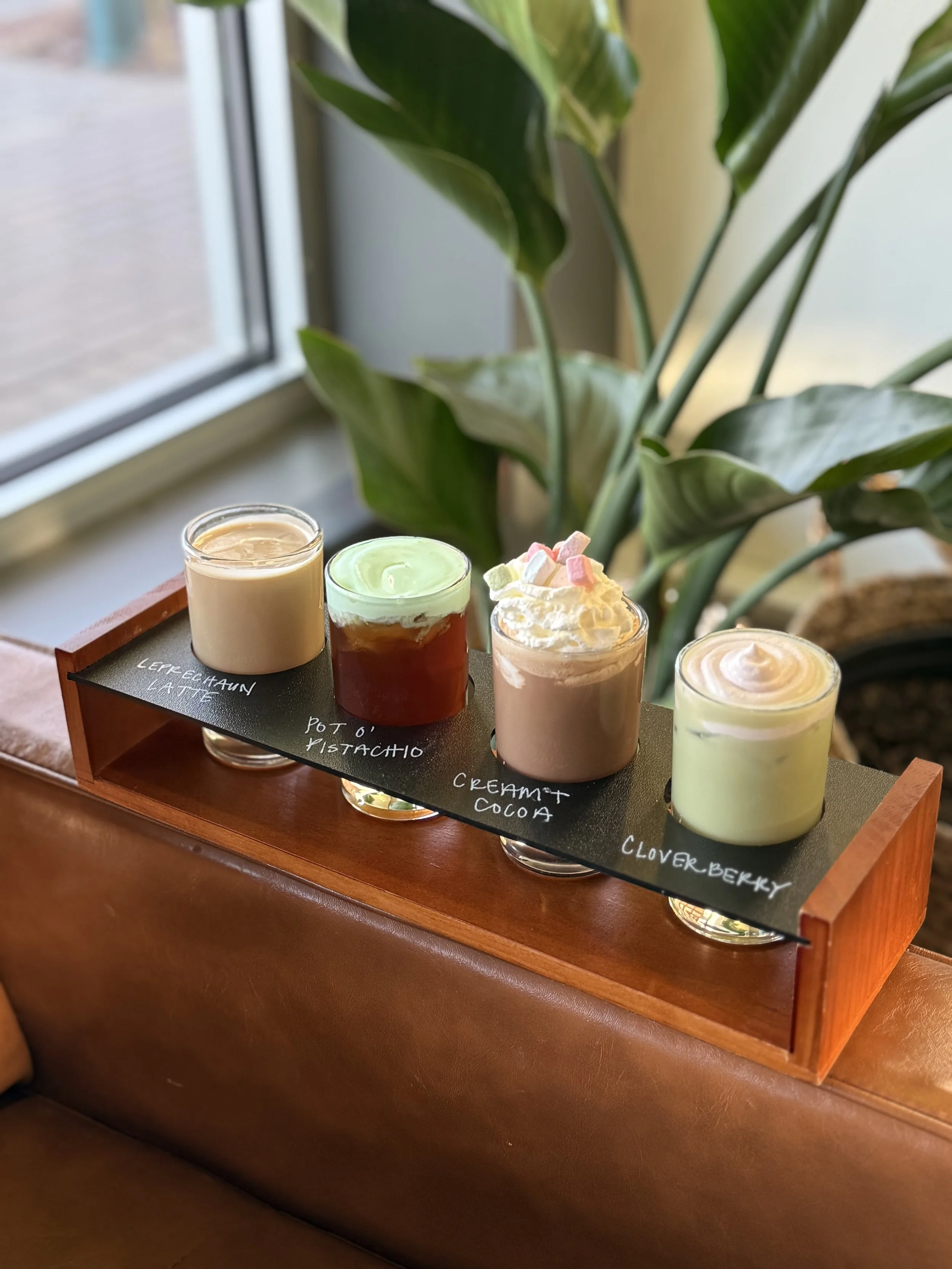 Our Monthly flight changes on the first of every month. The flights are pre-picked for you, no substitutions. The monthly flight comes with two hot and two cold drinks and are available in-house or to-go but can’t be ordered online.
